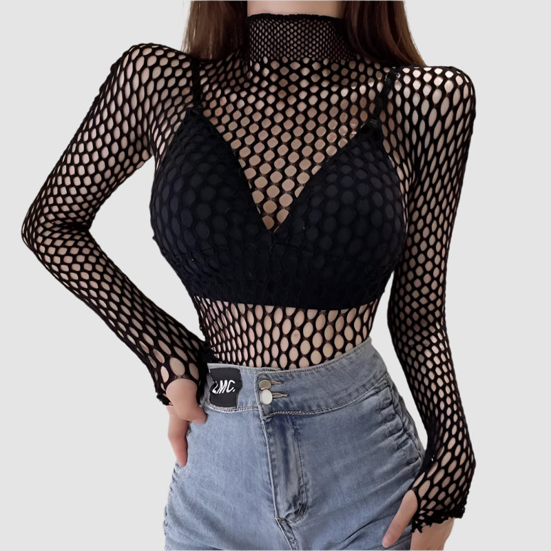 - Rankovės: ilgos, pagamintos iš skaidraus tinklelio.