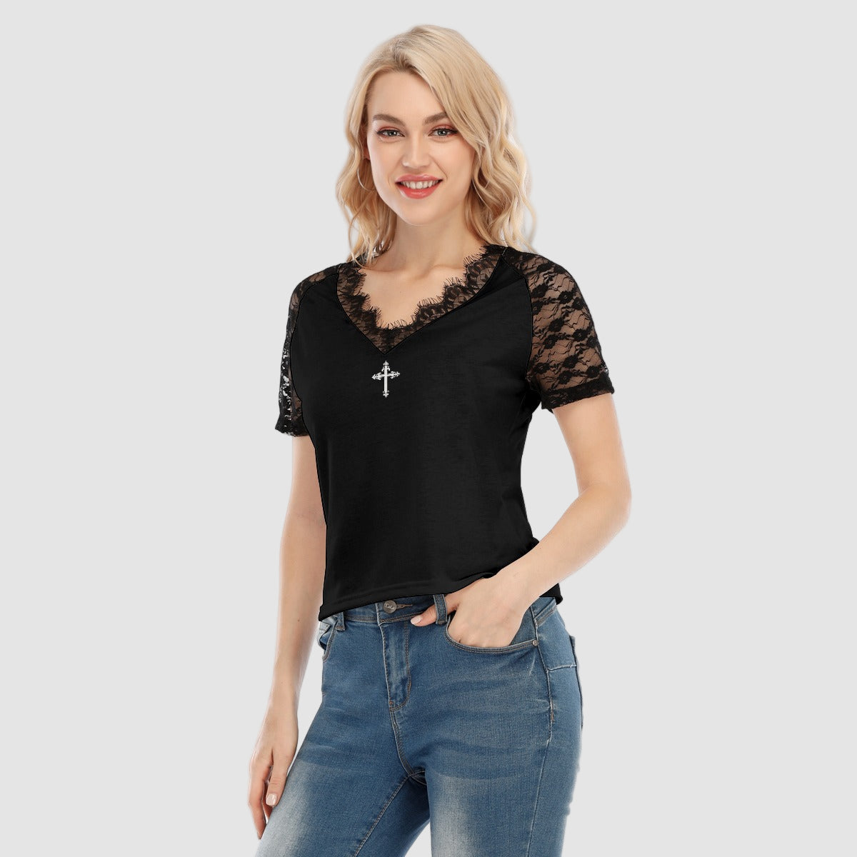 - Juoda nėriniai ant kraštų, V formos iškirptė