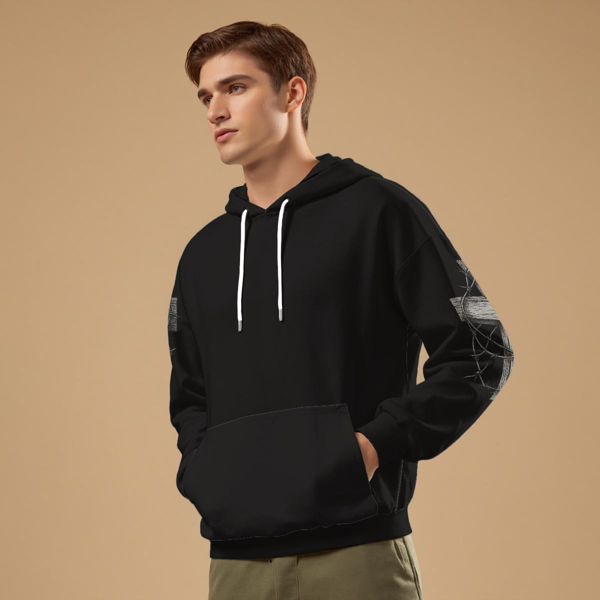 - Ilgos rankovės, vidinis kilpų raštas, su raišteliu, kengūros kišenė