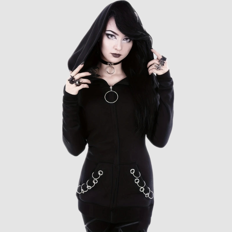 - Modelis: laisvo kirpimo džemperis su gobtuvu, su užtrauktuku