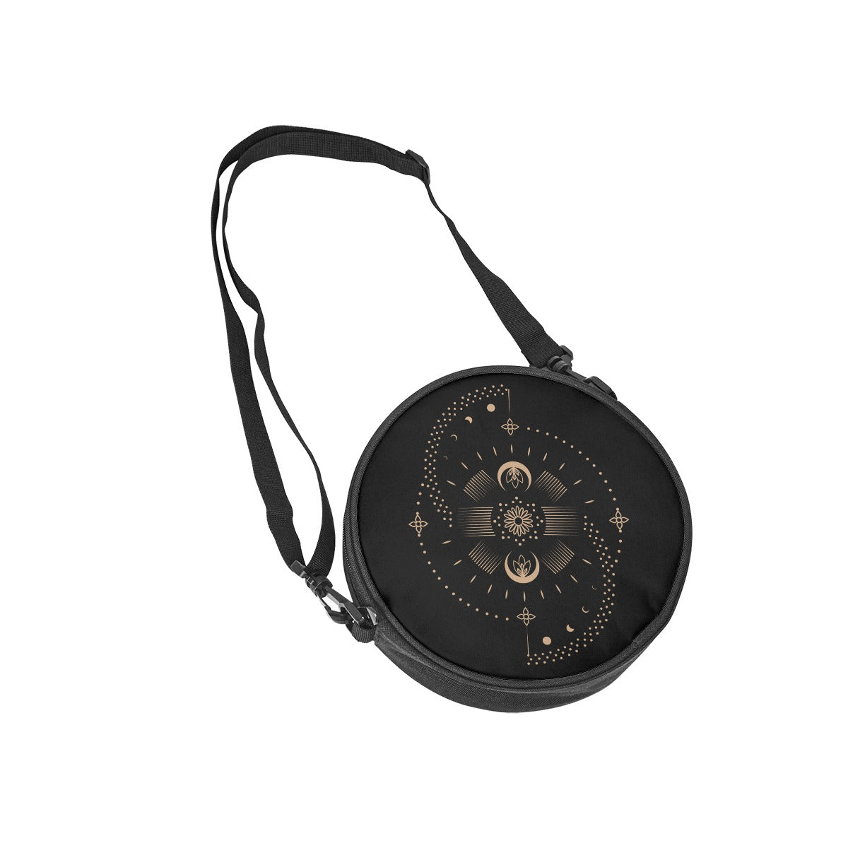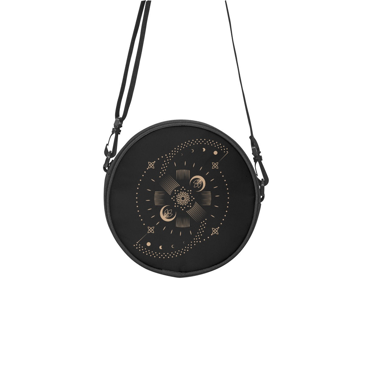 Juoda apvali rankinė su auksiniu mėnulio simboliu