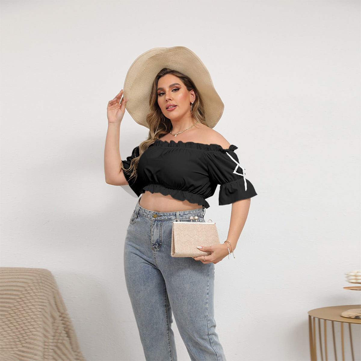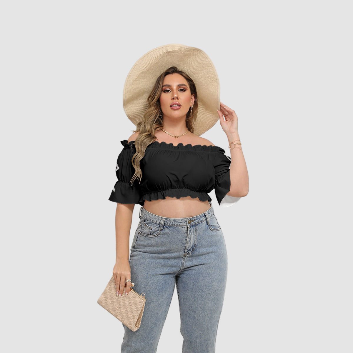 - Trumpa pūsta rankovė, atidengianti pečius, su raišteliu