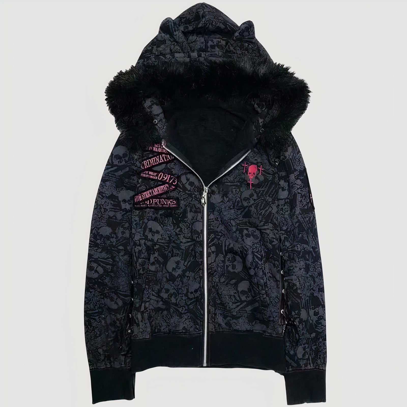 - Detalės: siuvinėjimai, kaukolių motyvai, kontrastingi intarpai, kišenės